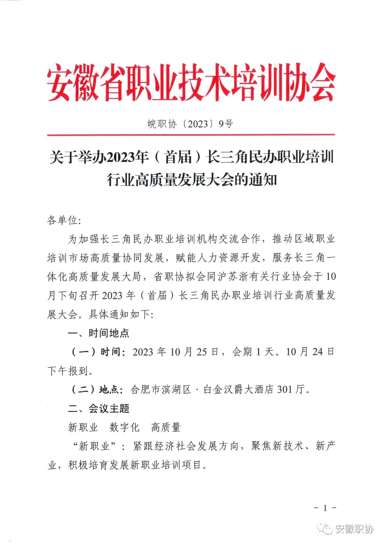 关于举办2023年(首届)长三角民办职业培训行业高质量发展大会的通知