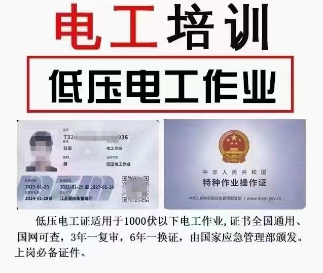 培训工种:低压电工 (1000伏以下) 适用于工厂、企业、民用电操作等