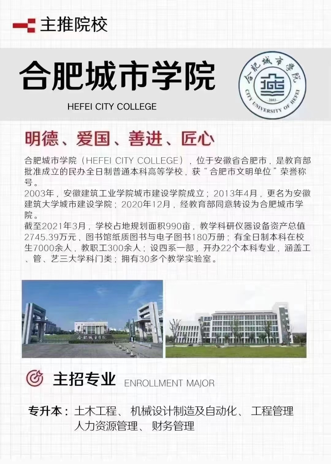 优秀成人专升本院校----合肥城市学院