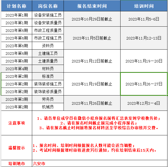 2023年安徽八大员11月份 考试时间表